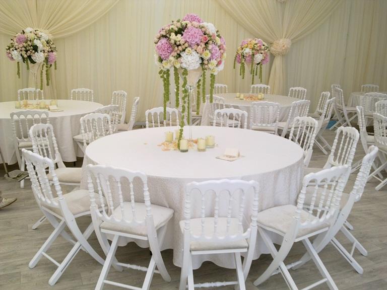 круглые изделия отличаются изящностью форм. Оптимальны для небольших по площади залов, где планируется организовать торжественную обстановку;