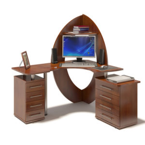 Эта мебель может выпускаться в различных модификациях. Обязательно в конструкции присутствуют тумбы, выдвижные ящики, полки, надстроенные полки, ниши. Дополнительно комплектуется местом для установки принтера, сканера. Главное условие – это удобство. При нахождении за компьютером пользователь должен чувствовать себя удобно, комфортно, не должно возникать болей, усталости, напряжения.