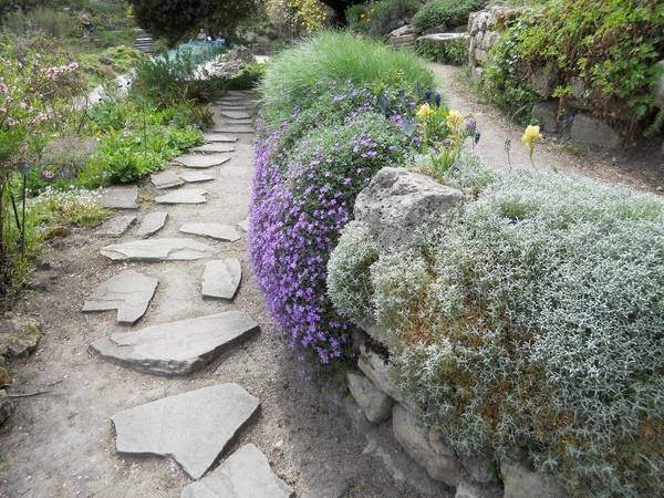 Альпинарий может быть построен на ровном месте либо на склоне. В первом случае вам придется либо искусственно создавать небольшую горку, либо выкопать склон вниз, как на фото ниже.