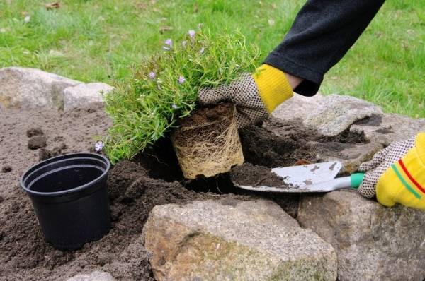Полейте растение, пока оно еще находится в своем горшке. Затем снимите его и осторожно освободите некоторые из корней — особенно, если они намотаны вокруг кома земли. Поместите растение в посадочный карман и прикройте корни почвой. Как завершающий штрих — посыпьте сверху мелкие камешки или песок, который будет защищать вашу альпийскую горку, созданную своими руками, от опадающих листьев и сорняков.
