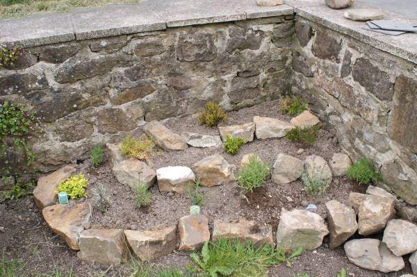 Кроме того, вы можете обустроить миниатюрную альпийскую горку в каменном желобе, горшке, садовой вазе или другом контейнере, имеющем дренажные отверстия. Чтобы они со временем не засорялись, их закладывают черепками от старых разбитых горшков.