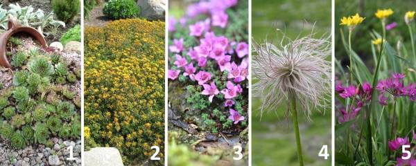 Вот пример популярной комбинации из 5-ти альпийских растений, которые широко применяются в садоводстве по всему миру: