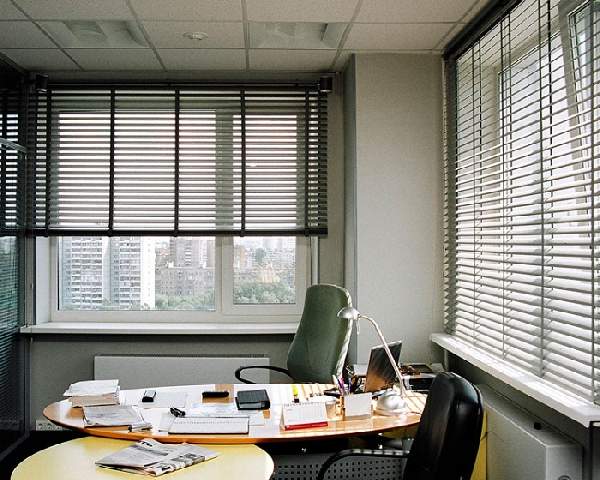 Оконные завесы, которые являются также элементом декора, рекомендуем выбирать в соответствии с общим дизайном и функциональным предназначением комнаты. Например, алюминиевые жалюзи на окна офисов, переговорочных комнат, руководительских кабинетов выбирают строгие однотонные, в приоритете может стать корпоративный цвет. Идеальным вариантом будет светлый металлик. В приемной можно разместить жалюзи с изображением логотипа и символики компании.