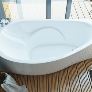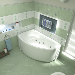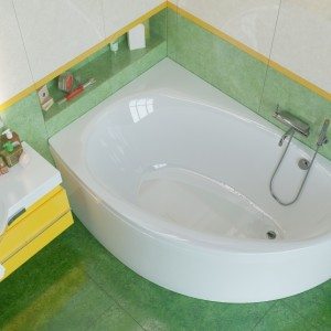 Такие модели – прекрасное решение для небольших ванных комнат, так как ванна акриловая асимметричная займет меньше места, чем модель стандартной формы. А если площадь санузла большая, то можно подобрать просторную ванну сложной формы, которая станет основой, вокруг которой будет создаваться интерьер.