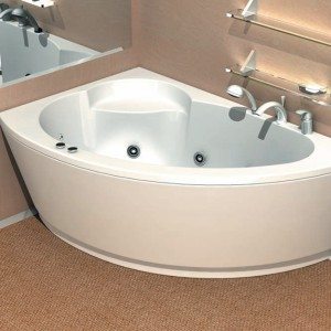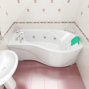 Для комнаты средних размеров подойдет ванна асимметричная 150. Ширина моделей может быть разной, в зависимости от модели. Вместимость ванны определяется ее глубиной, а также толщиной стенок. Как правило, в ванны длиной 150 см входит от 140 до 200 литров воды.