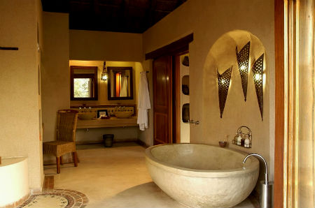 Полы. Дизайн интерьера в африканском стиле можно подчеркнуть деревянными полами, паркетной доской или термодоской (идеально подойдет для ванной комнаты), кроме того можно использовать обычную керамическую плитку, лучше песочного оттенка. В крайнем случае, пол можно покрыть ламинатом, озвученного выше цвета.