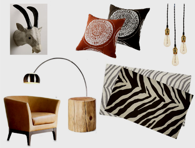В таком интерьере, должны преобладать всевозможные натуральные, природные материалы — деревянная мебель, плетеные и каменные предметы, мех и кожа. А истинный Африканский интерьер, несмотря на общий минимализм, отличается внешней грубоватостью, массивностью и игрой на контрастах. В рассматриваемом дизайне, акцент делается преимущественно на природный мир Африки, здесь можно наблюдать животный принт под окрас зебры, жирафа или леопарда. Кроме того оформляемые помещения не могут обойтись без тематических украшающих элементов, всевозможных статуэток, масок, корзин и т.д.