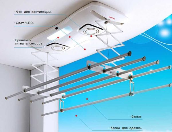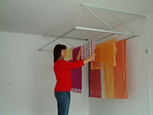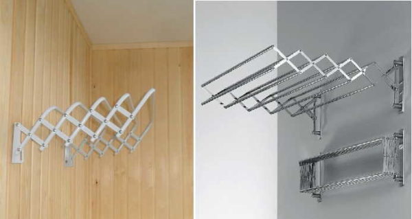 Из названий понятны особенности установки каждой модели. Могут потребоваться только пояснения по поводу навесных бельевых сушилок. Они обычно небольших размеров — длиной 60-100 см, на 3-6 веревок/перекладин (на фото).