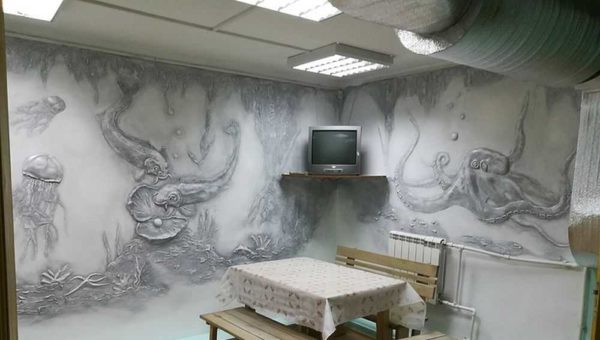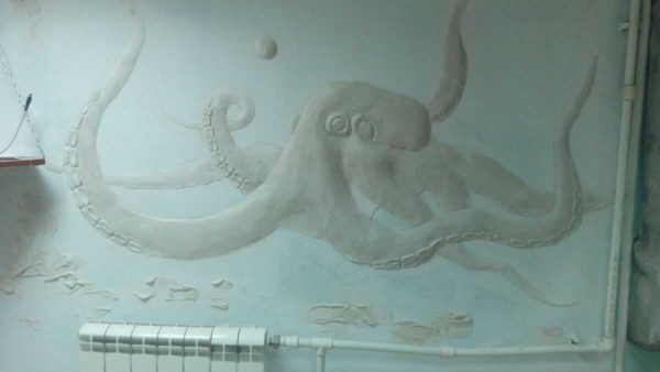 По той же технологи сделан осьминог на прилегающей стене