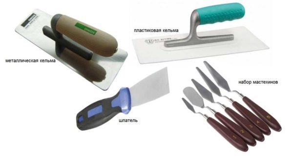 - Металлическую кельму из нержавеющей стали. Ею наносят раствор, выравнивают его, создают неглубокий рельеф небольшого размера. Применяют обычно если работают с большими площадями.