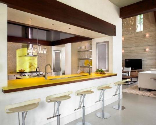 Другими важными преимуществами барной стойки являются её эстетическая привлекательность и то, что она может красиво разделять пространство, выступая в качестве переходной зоны.
