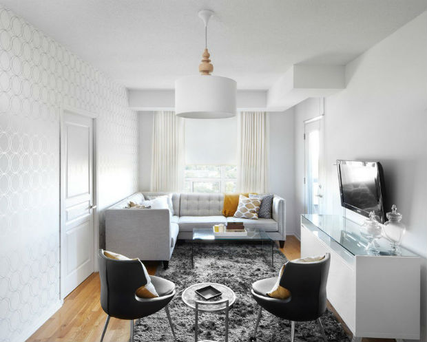 • Белые обои обладают отражающими свойствами, так придвинутый к стене серый диванчик, создаст ощущение посеревших от времени обоев, хотя по факту они белоснежные и новые.