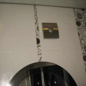 В ванной запрещено делать открытую проводку, поэтому провод следует прокладывать в специальном канале, скрыв под слоем штукатурки или подвесным потолком.