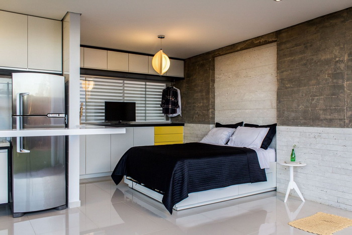 В небольших квартирах использовать такую отделку нужно дозировано, что бы, не создать гнетущую атмосферу в доме. Лучше не покрывать все стены бетоном, а выделить, таким образом, только одну, например, в изголовье кровати в спальне.