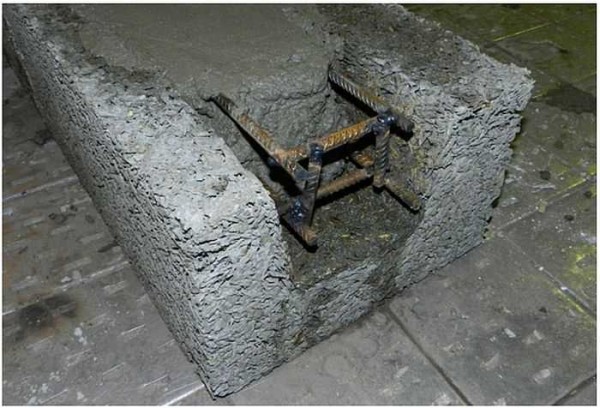 - Прочность при сжатии — 0,5-5 МПа. Это — одна из самых привлекательных черт арболита — его тяжело разрушить. Еще момент: он восстанавливает свою форму после снятия нагрузки. То есть, ударив кувалдой, сделать вмятину можно, но через некоторое время она выровняется — частино или полностью зависит от «тяжести» нанесенного повреждения.