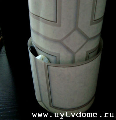 Наступил момент склеивания вазы, берем ватман или старые плотные обои, склеиваем его в цилиндр (ВНИМАНИЕ: ширина вазы будет зависеть от ширины данного цилиндра, представленная ваза из журнальных колечек в диаметре составляет 11 см).