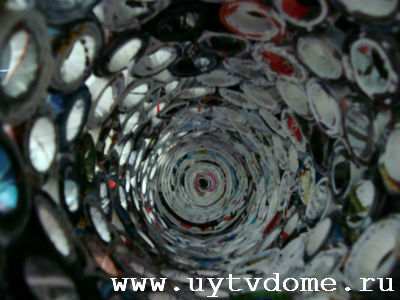 Выкладываем журнальные колечки в нижней части цилиндра и склеиваем их вместе при помощи прозрачного клея момента, все последующие ряды будем приклеивать при помощи клея ПВА. Почему нижний ряд клеим на момент? Дело в том, что данный клей быстрее сцепляется (сохнет), а нам нужно создать прочную основу (далее будет понятно), которая к тому же быстро просохнет.