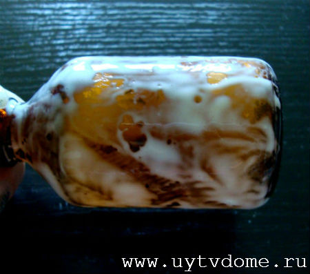 • Берем первую бутылочку и тщательно обмазываем клеем ПВА.