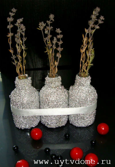 Вот такой сегодня получился невероятно простой мастер класс, в результате которого получилась замечательная композиция из трех маленьких вазочек. Буду рада, прочесть Ваши отзывы в комментариях, и не забудьте подписаться на обновления сайта.