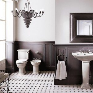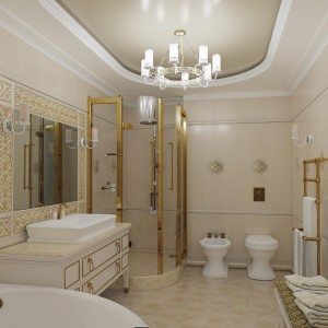 Это требование касается и сантехники, санфаянса ванной комнаты классического стиля. Не забывайте об этом, выбирая унитаз, раковину, умывальник, душевой поддон или же биде.