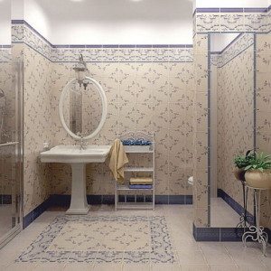 Ванные комнаты в стиле прованс должны быть светлые, утонченно пастельные: небесно-голубоватые, бежево-розовые, нежно-песочные, это также оттенки морской воды, луговых трав, солнечного света. Производители керамики обеспечили покупателей ее широчайшим ассортиментом. - Пол желателен теплый. По цвету он должен гармонировать со стенами, но быть немного темнее: приемлемы теплые песочные, терракотовые, коричневые оттенки. И тут безусловно практичнее также воспользоваться плиткой, стилизованной под дерево.