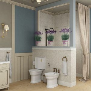 Вся сантехника должна быть ультрасовременной по своим функциям и только стилизована под прованс: