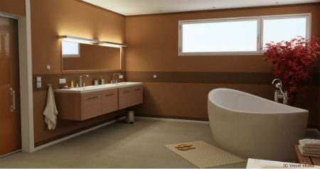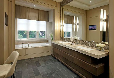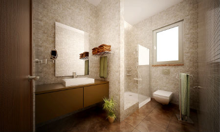 Бежевые и коричневые оттенки пользуются огромной популярностью в оформлении ванной. Визуально бежевая ванная комната кажется теплой, что позволяет расслабиться при принятии различных водных процедур.