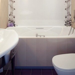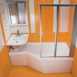 - Менее радикальный вариант, подходящий для ванных комнат с более «квадратной» конфигурацией – установка угловой ванной.
