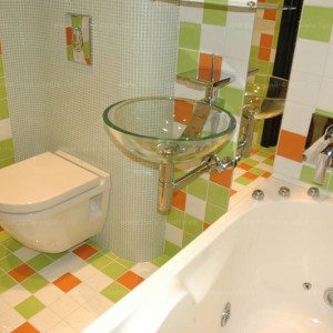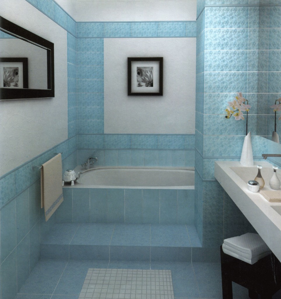 Для плитки это правило тоже справедливо, так что плитка, которой будет облицована ванная комната маленькая в хрущевке, должна быть достаточно светлая (бирюзовая, голубая, салатовая) с мелким рисунком без крупных и темных пятен.