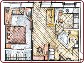 Именно поэтому далее мы рассмотрим не столь радикальные варианты перепланировки, которые заключаются в выборе расстановки деталей интерьера ванной комнаты, а также – подборе отделки, визуально расширяющей помещение.