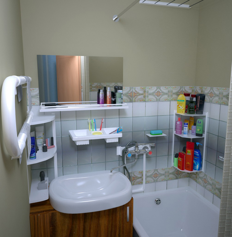 Несколько получше с пространством дела обстоят в совмещенных санузлах – однако и в этом случае о просторном помещении говорить не приходится. - Во-вторых – коммуникации. Ванная в хрущевке чаще всего требует перепланировки – а жесткая привязка основных предметов интерьера ванной к стоякам (в первую очередь – к канализационному стояку) существенно эту перепланировку затрудняет.