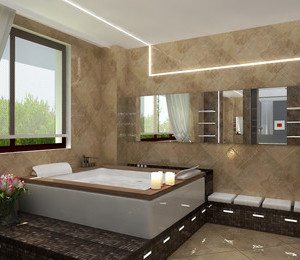 Конечно, если осуществляется ремонт ванной комнаты в частном доме, то вопросы подачи воды и канализационного слива уже решены. В такой ситуации важнее провести ревизию технического состояния инженерных сетей, и больше внимания уделить перепланировке или установке новой сантехники, а также отделке стен и потолка в соответствии со вкусами владельцев.
