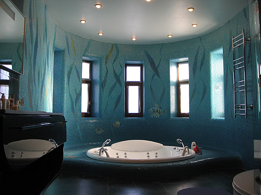 - декоративной отделкой пола, стен и потолка в ванной комнате.