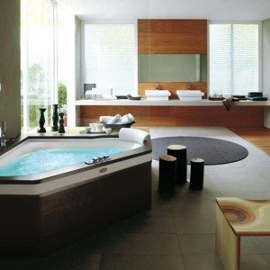 Особое место в дизайнерской линейке джакузи занимают круглые ванны. Лучше всего джакузи круглой формы будет смотреться в центре ванной комнаты, однако при этом нужно помнить, что площадь ванной должна быть достаточно существенной.