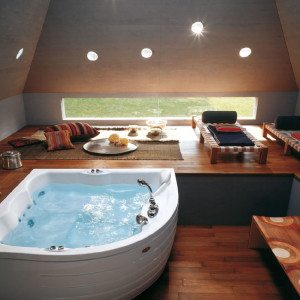 Итак, с материалом мы определились. Осталось подобрать форму и конфигурацию ванны-джакузи. Для большинства наших квартир, ванные комнаты в которых не могут похвастаться большой площадью, подходят джакузи  — угловые ванны.