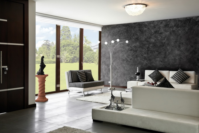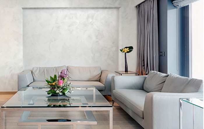 Венецианская штукатурка. Это особый состав и техника нанесения этого состава на поверхность стен известны с давних времён. Состав включает в себя мраморную пыль, при работе мастер наносит на стену до 7слоёв – довольно сложный процесс и дорогостоящий материал. «Стена, будто светится изнутри» – оправдывает все вложения.