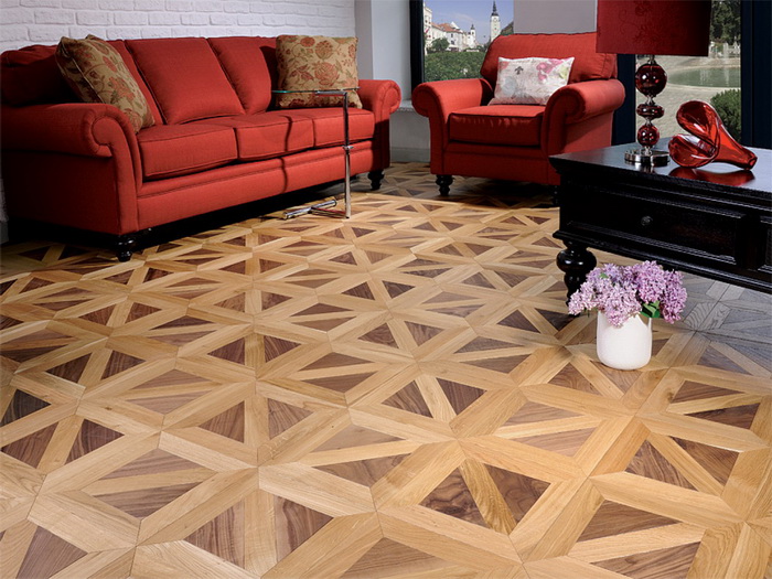 Паркет – самый дорогой и эстетически не превзойдённый способ украсить пол. Набирается из разных пород дерева. Может складываться в разные рисунки и узоры: от примитивной ёлочки до витиеватых мозаик. Конечно, предпочтительно укладывать паркет в гостиные, спальни, детские. Из минусов можно назвать только цену, достаточно, высокая. Все остальные критерии только в плюс: экологичность, практичность, износостойкость, красота.