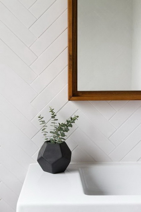 Вертикальная и горизонтальная раскладка плитки – это первый помощник в расширении и удлинении помещений. Прямоугольная плитка «кабанчик» имитирует кирпичную кладку, ее уверенно можно крутить в разные стороны. Расположите длинной стороной вниз — сделаете комнату шире визуально, короткой — «поднимите» потолок.