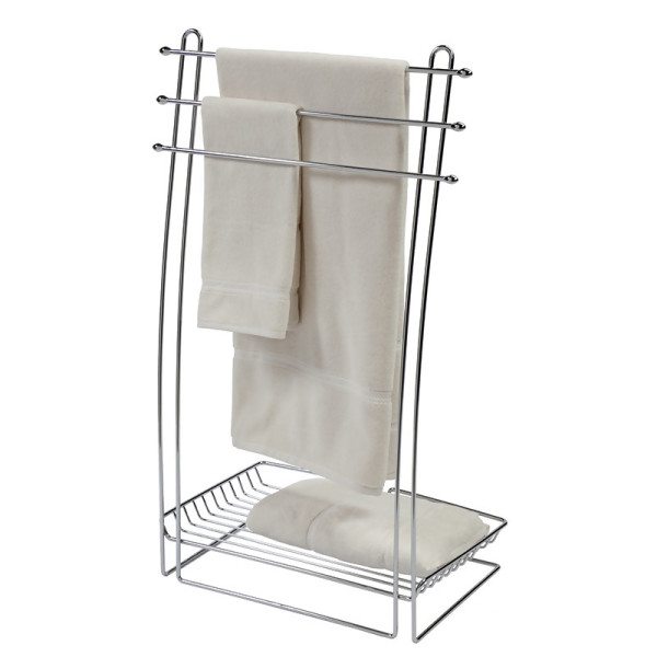 Напольные полотенцедержатели могут быть не только стационарными, но и передвижными. Это удобно, так как вы можете пододвинуть вешалку с полотенцем прямо к купели или душевой кабинке, чтобы не идти к ней в другой конец комнаты после банных процедур.