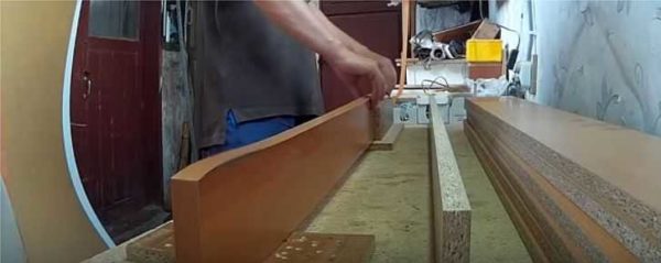 Выбранный инструмент прижимают к уложенной кромке, надавливают всем весом, прижимая ее к поверхности ДСП. Движения при этом — поглаживающие. Так проглаживают всю кромку, добиваясь очень плотного прилегания. В таком виде деталь оставляют на некоторое врем — чтобы клей «схватился». Затем можно приступать к обработке кромки.