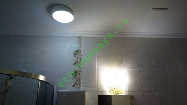 В помещении с вентиляцией, соответствующей действующим СНиП (25 кубометров в час для ванной или туалета и 50 — для совмещенного санузла) для потолков можно смело использовать приборы с защитой IP24 — IP44.