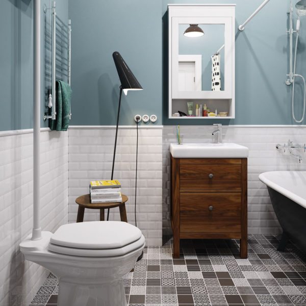 Типичный санузел городской квартиры имеет удручающе маленькую площадь, поэтому напольные светильники для ванных комнат пользуются спросом в основном у владельцев коттеджей.