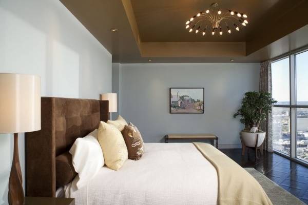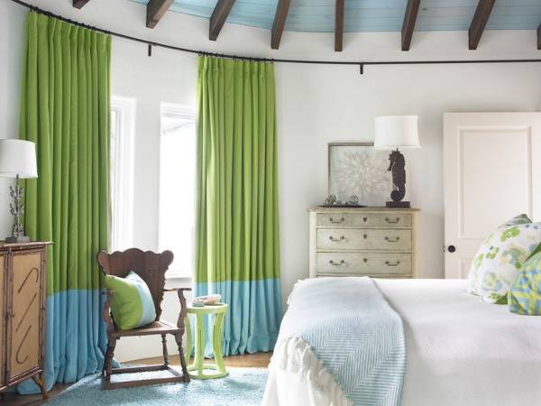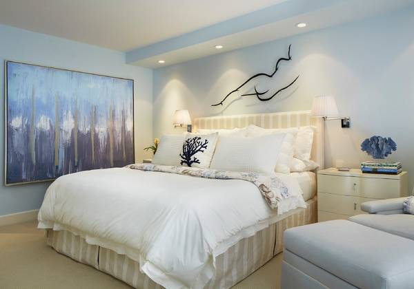 Естественно, что успокаивающий голубой цвет отлично подходит для использования в спальнях, детских и ванных комнатах. Сегодня светло-голубые спальни принято дополнять белым, зеленым цветом и различными пастельными тонами. Для пущего умиротворения в них следует избегать вычурности и изобилия декора. При этом строго дозированное применение кружев, лепнины и других классических элементов уюта только приветствуется.
