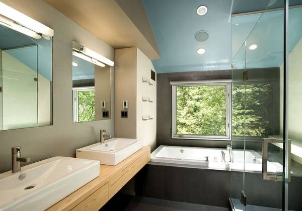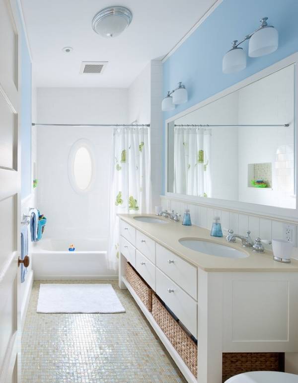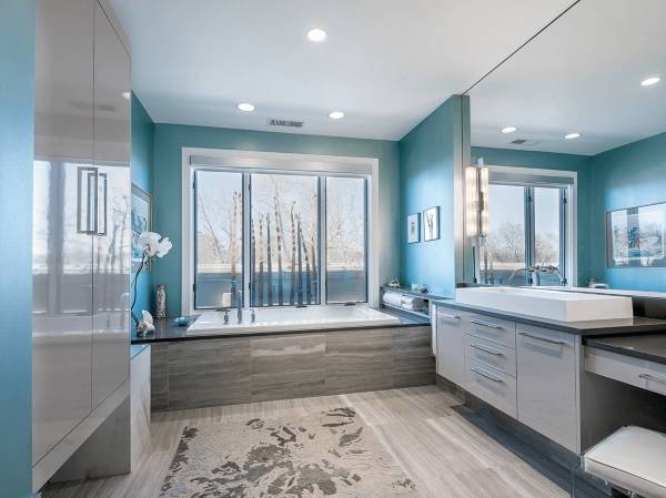Аналогичным образом, голубой цвет в интерьере ванной комнаты будет способствовать вашему расслаблению и получению удовольствия от водных процедур.
