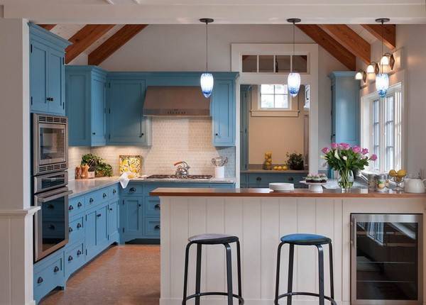 Современные, классические и эклектичные интерьеры одинаково хорошо выглядят в голубых тонах. Кроме того, сегодня их очень популярно использовать при деревенском дизайне в стиле кантри и прованс. Светло-голубые оттенки придают таким жилищам шарм уютного домика на побережье. И с таким же успехом приносят свежесть в интерьеры в стиле ретро, лофт, шебби шик, в скандинавском духе и т. д. Поистине универсальный цвет!