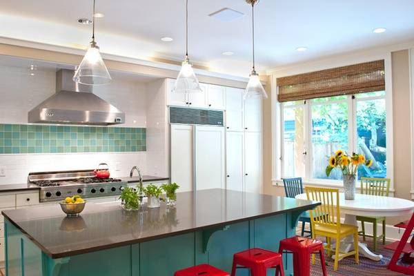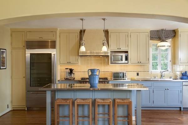 Самое популярное использование голубых оттенков — на кухне. Только представьте, как на фоне голубых стен или мебели будет смотреться вишневый пирог или запечённый окорок… Но эта фантазия одновременно является и предупреждением: голубой цвет не подходит для интерьера кухни человека, который стремиться похудеть или имеет проблемы с пищеварением. Стереотипы о том, что голубой цвет подавляет аппетит, — ложны. Читайте больше об этом в нашей статье Как дизайн вашей кухни может способствовать похудению.