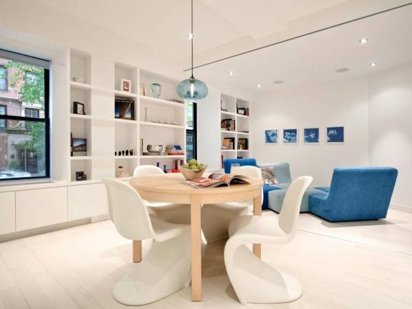 Прохладный и успокаивающий, голубой цвет является одним из самых безопасных для дизайна интерьера, поскольку с ним очень трудно переборщить. Он всегда в моде, но не настолько, чтобы приесться, как более темные и насыщенные оттенки синего. Поэтому его можно применять с большой уверенностью, оформляя стены, потолок и все остальные части помещений. Давайте же взглянем на то, как современные дизайнеры используют голубой цвет в интерьере, вместе со следующей подборкой 35 фото от Dekorin!