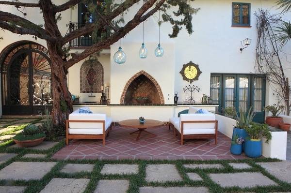 Наконец, довольно интересно голубой цвет может смотреться в дизайне вашего дворика. Ведь если не брать в расчёт небо и водоёмы, в окружающей нас среде голубой цвет встречается крайне редко.
