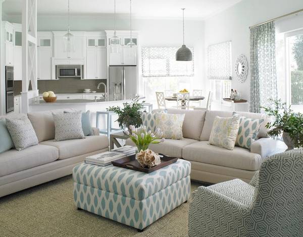 Светло-синий также является идеальным цветом для дизайна гостиной, поскольку он одновременно способствует формальной обстановке и гармонии в атмосфере.