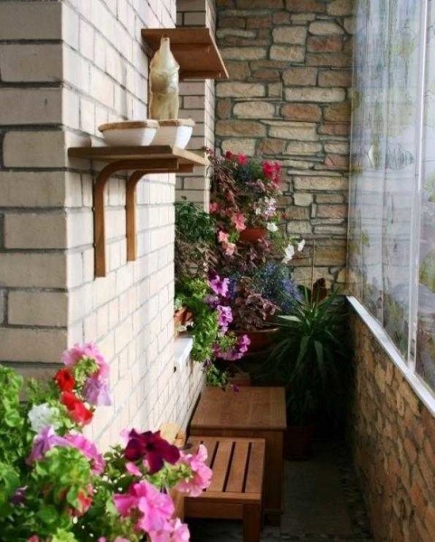 Можно выносить на лето цветы в горшках. Вариантов тут еще больше. Если места мало, можно сделать специальные полки или нишу на одной из стен.